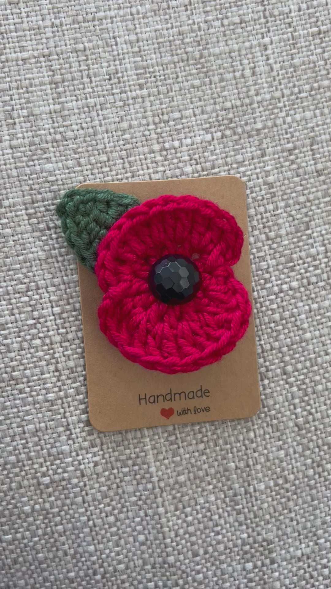 This handmade crocheted poppy brooch is the perfect way to show your support this Remembrance Day.